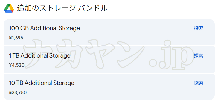 | ストレージバンドル100GB追加 | 16.95円/GB |
